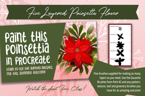 This Five Part Poinsettia Flower for Procreate Brush Set includes 5 original brushes made by myself, Delores Naskrent.
